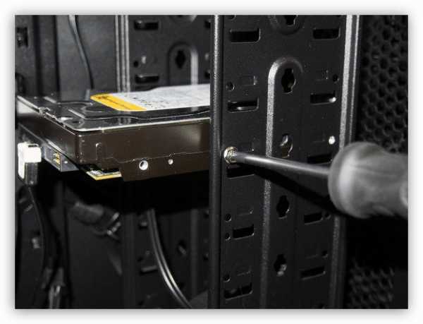 - Открутите винты, которые крепят HDD к стенкам бокса, и аккуратно выньте его из системного блока.