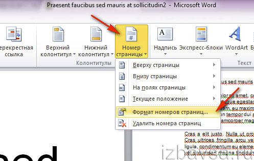 - В открывшемся меню выберите пункт «Формат номеров страницы…».
