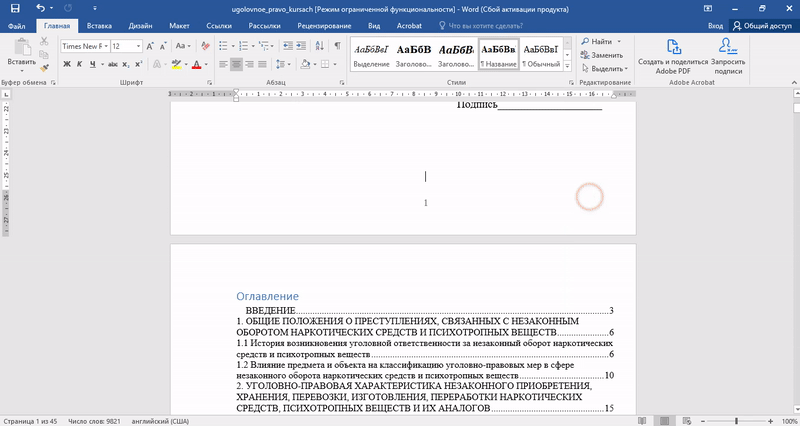 При работе с некоторыми типами документов: курсовыми, дипломными, рефератами, электронными книгами и т.