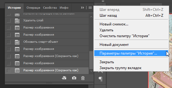 Настройка панели истории
