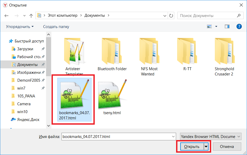 Выберите место для сохранения файла с закладками.