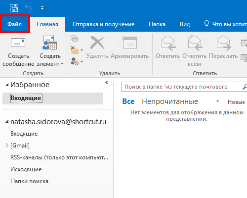 Если на ленте нет элемента Файл, у вас не Outlook 2010 . В этом случае вы можете найти инструкции по импорту для своей версии Outlook в статье Какая у меня версия Outlook?