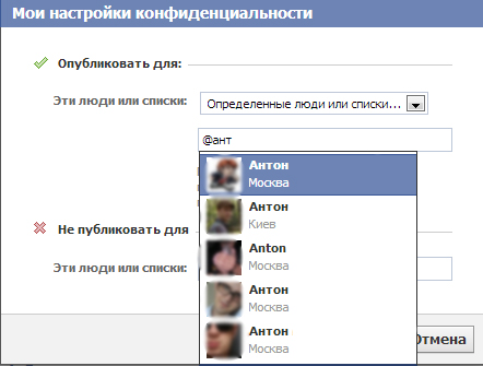 Также можно настраивать область видимости для каждой публикации отдельно (прямо в хронике).