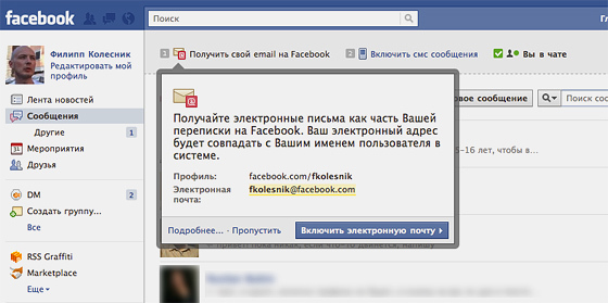 Сообщения работают как чат, но их вы можете посылать людям, находящимся оффлайн — то есть тем, кто в данный момент не находится на сайте Facebook. В этом смысле сообщения похожи на письма обычной электронной почты.