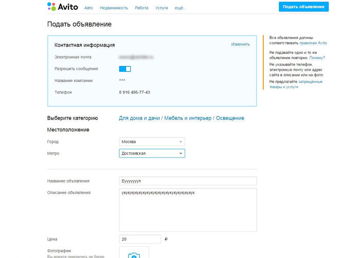 - 1 Как подать объявление?