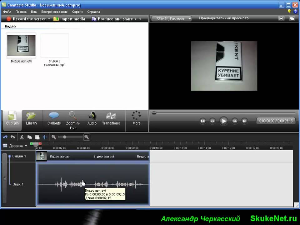 Итак, давайте разберемся с тем, как работать Camtasia (версии 9.0)