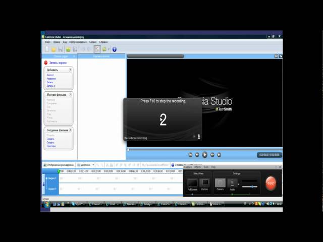 Определив предпочтительные стандарты создаваемого файла в Camtasia Studio, для старта записи необходимо всего лишь нажать кнопку Rec, а для приостановления и полной остановки видеозаписи применяются команды Pause или F9 и F10 соответственно.