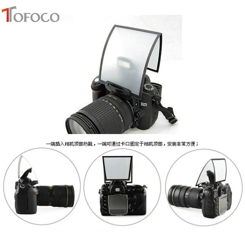 На иллюстрации показана вспышка с направленной вверх головкой, широкоугольный рассеиватель и отражающая карта.