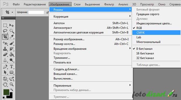 Переключить RGB на CMYK в Photoshop