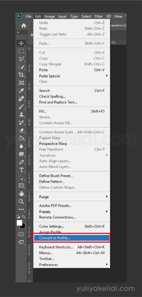 Чтобы переключить RGB на CMYK, все, что вам нужно сделать, это просто перейти к Edit > Convert to Profile , чтобы открыть меню Convert to Profile : Convert в меню Profile позволяет конвертировать RGB в CMYK в Photoshop.