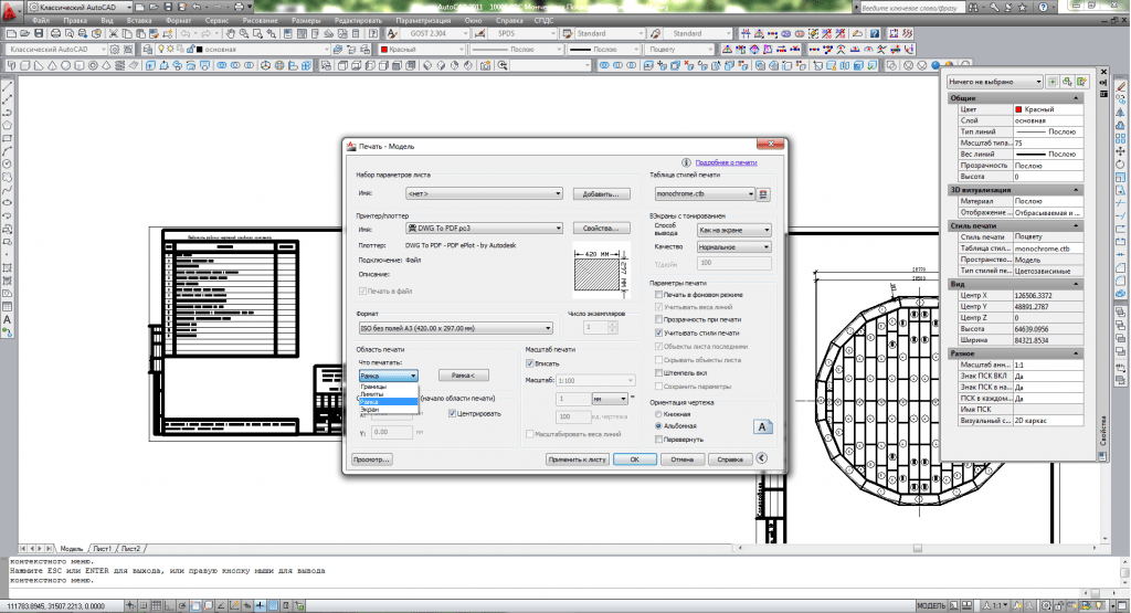 - Плоттер, на котором будет печататься в будущем наш лист. Можно выбрать кстати и виртуальный плоттер “DWG To PDF”, который будет сохранять наши листы в картинки формата PDF. Очень хороший вариант для отправки заказчику чертежей в электронном виде. Ну и для нас это тоже хорошо, если у нас к примеру дома нет плоттера 🙂