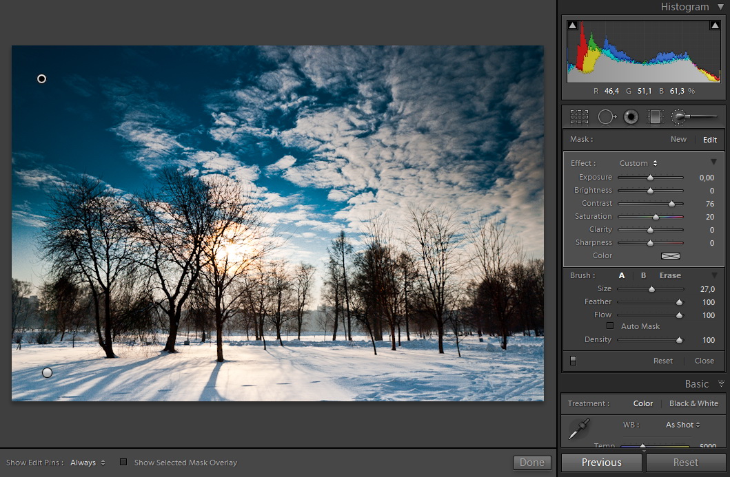 Разница очевидна. Небо выглядит намного лучше, хотя я не менял никакие другие настройки, такие как насыщенность.
