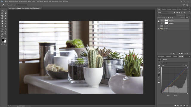 Лучший способ исправить свет — использовать Кривые. Вы можете найти его в Image>Adjustments>Curves.