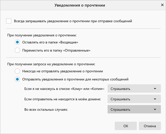 Поскольку получатель может отказаться отправлять уведомления о доставке, а не все программы электронной почты поддерживают их, используйте эти функции с осторожностью.