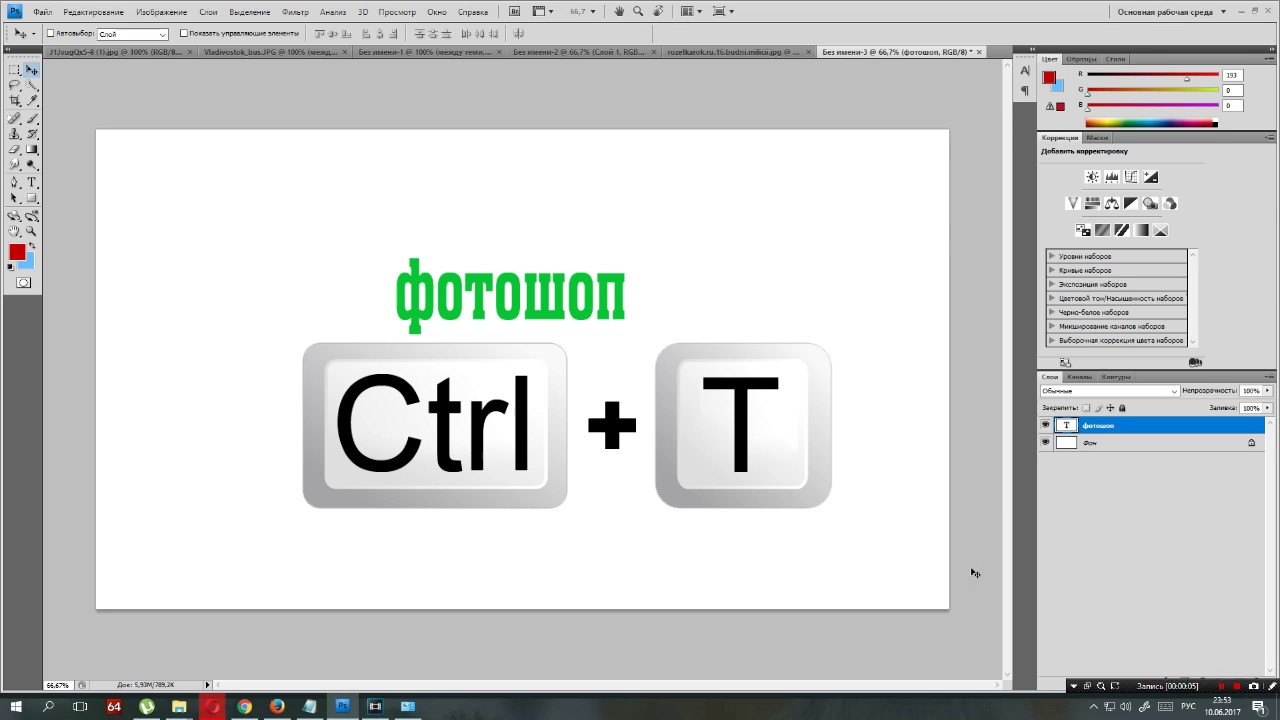 - Выберите слой и нажмите Ctrl + T и