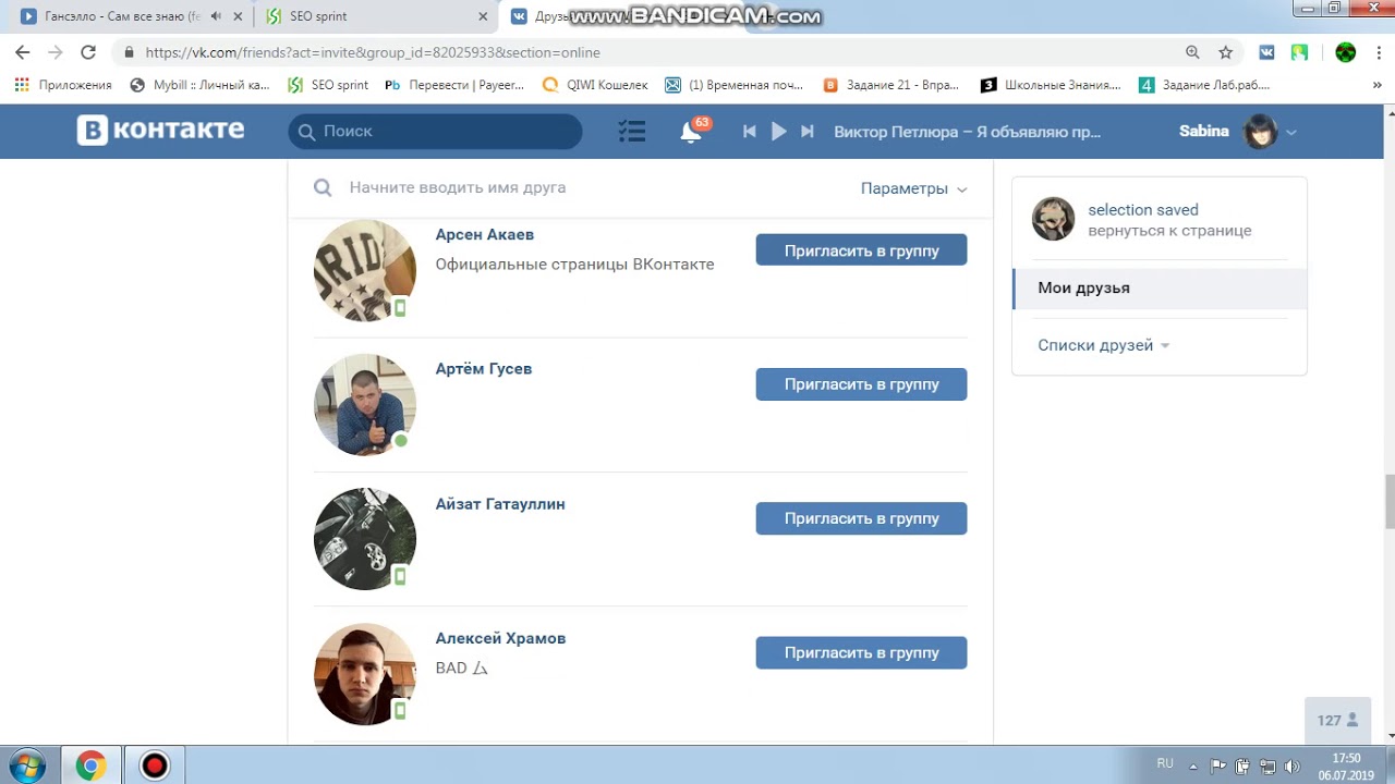 Система позволяет за раз пригласить 40 человек, ну а мы можем подстраховаться и приглашать немного меньше. - Можно завести еще один аккаунт в котором заведомо заводим нужных нам друзей и высылаем приглашения друзей в группу в контакте с него.