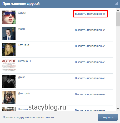 Теперь, мы просто нажимаем «пригласить» напротив каждого друга, которого хотим добавить в группу.