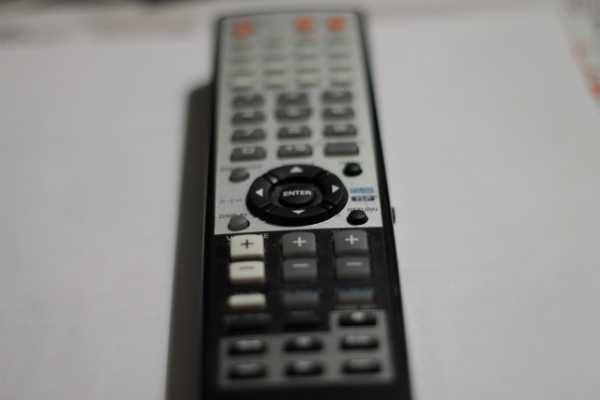 При анализе результатов проверки объективов на бэк-фокус лучше всего воспользоваться компьютером или ноутбуком, ну уж «на худой конец» просмотрите полученные результаты тестирования на экране фотоаппарата. Во всех из выше перечисленных случаев, если объектив работает правильно, то центр резкого пятна должен приходиться на объект, на котором вы осуществляли фокусировку, иначе центр фокусного пятна будет смещен дальше или ближе к вам относительно объекта фокусировки. При этом, если фокус смещен в сторону дальше от вас, то это означает, что у объектива присутствует бэк-фокус, если фокус смещен в сторону ближе к вам, то это означает, что у объектива присутствует фронт-фокус. В таких случаях лучше поискать более хороший вариант. Для примера я такой тест провел на пульте от аудио системы. Объектом фокуса на фото ниже выступала кнопка Enter.