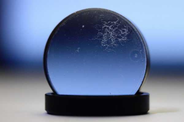 Любой объектив, даже новый, может иметь на линзах пыль, а уж если объектив эксплуатировался и эксплуатировался не аккуратно, то внутри него пыль будет это точно. Здесь нужно учитывать то, что царапины, пузырьки, пыль и прочее на передней линзе практически не влияют на качество изображения, а их наличие на задней линзе может серьезно повлиять на качество фотографии. Но в нашем случае повреждения на задней линзе хоть и возможны, тем не менее мало вероятны, ведь мы решили покупать новый объектив в магазине. Если покупка все же происходит с рук, то естественно объектив может иметь не только пыль, царапины и прочее, так как это не изобежно при его использовании, но и потертости на контактах, которые образуются при смене объективов. Здесь лишь нужно обращать внимание на степень износа и запыленности в соизмерении с запрашиваемой стоимостью продавцом, т.к любой объектив можно почистить, обратившись к специалисту. Кстати, некоторые авторы интернет статей также упоминают про грибок, который поражает линзы объективов. Появляется он якобы в процессе неправильного хранения и эксплуатации объективов и имеет свойство перебираться с объектива на объектив и чистка линз в данном случае без их повреждения маловероятна. Вид объектива зараженного грибком смотрите на фото.