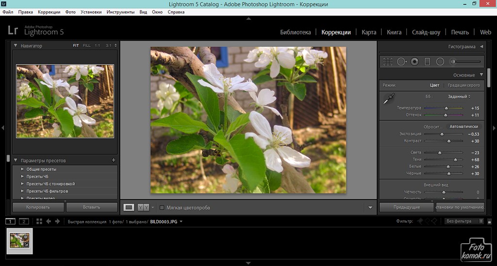 1. Выполнение основных настроек в Lightroom