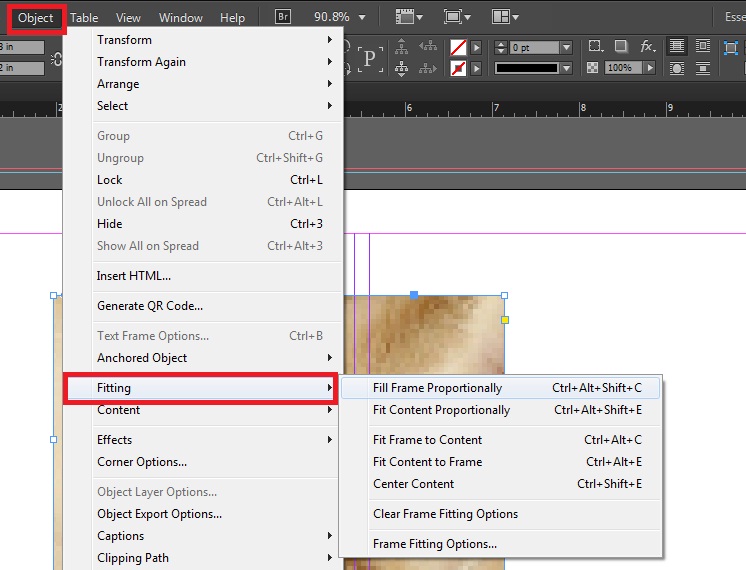 Набор ярлыков для подгонки изображения к фрейму также полезен, и с его помощью вы можете легко адаптировать содержимое так, как вам хочется. Чтобы сохранить тот же размер рамки и пропорционально разместить содержимое, нажмите Command + Option + Shift + E . (Обратите внимание, что если изображение и рамка имеют разные пропорции, то останется некоторое пустое пространство.)