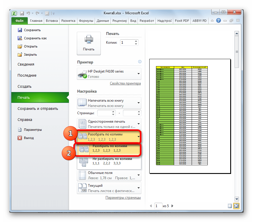 После того, как подключение проверено, можно приступать к распечатке содержимого файла Excel. Проще всего распечатать документ целиком. С этого мы и начнем.
