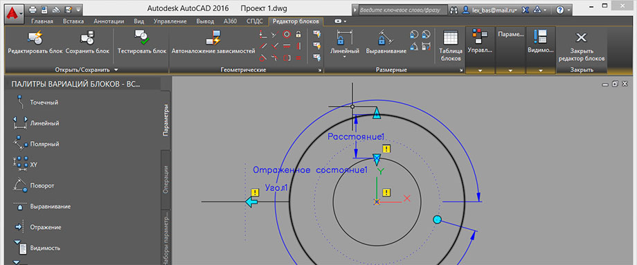 В AutoCAD редактор блоков – это дополнительная вкладка, которая появляется на ленте. Она предназначена непосредственно для изменения геометрии ранее созданного блока, присвоения ему параметров и операций, определяющих свойства и функции динамического изменения.