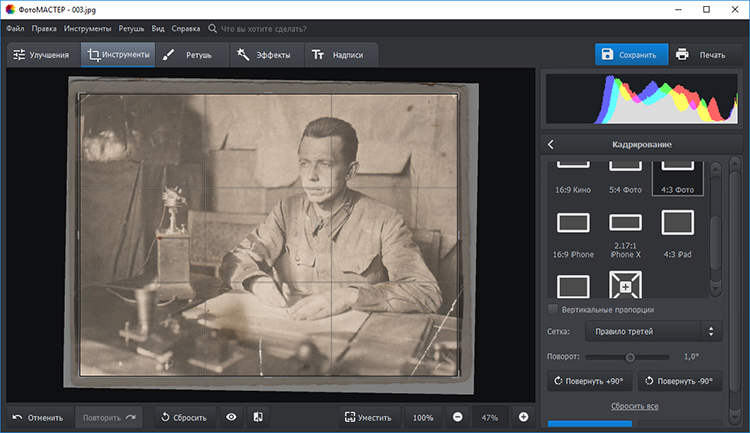 - Есть функция по удалению царапин и других следов времени с возможностью указать каждый недочет на фото вручную — Scratch Fix.