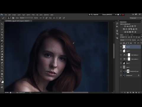 Внесем небольши измнения в цвет волос, бровей и некоторых фрагментов лица. Нет ни каких правил, делаем что нам подсказывает вкус и фантазия. Sponge Tool (O) Desaturate 7-35%