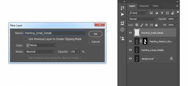 Создаем новый слой Layer – New – Layer (Слой – Новый – Слой) и называем его «Мелкие детали».