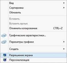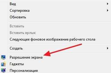 - В открывшемся контекстном меню выбираем пункт «Разрешение экрана».