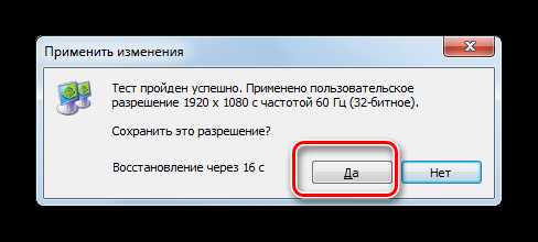Укажите необходимое разрешение, проверьте его работоспособность и установите как основное.