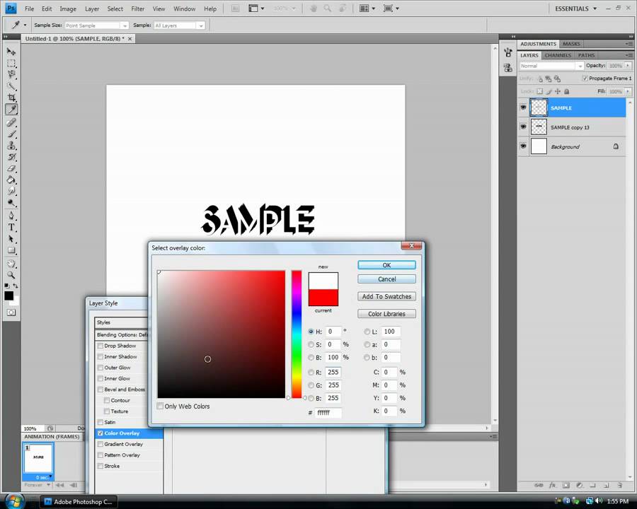 Чтобы цвета обоих слоёв с текстом соответствовали друг другу, идём Слой – стиль слоя – Наложение цвета (Layer > Layer Style > Color Overlay). Установите значения, которые указаны на скриншоте ниже.
