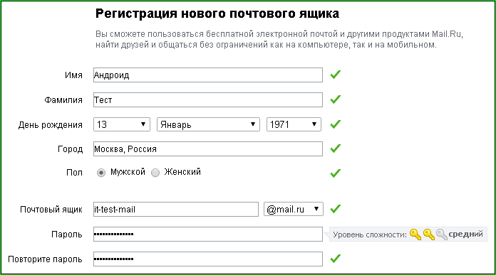 Затем нажмите «зарегистрировать почтовый ящик». Если вы правильно вводили буквы и цифры в капче и не пропустили ни одного обязательного поля выше (они отмечены красными звездочками), то все данные приняты, но вот ваш пароль…