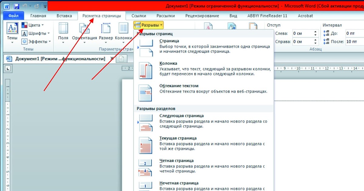 Разбейте текст с помощью разрывов страниц и разделов в Word