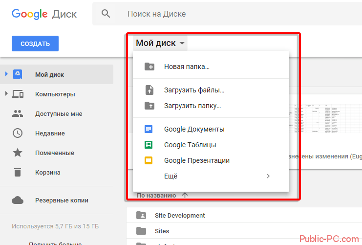 Вкладка «Мой диск» является центром Google Диска. Она содержит основной репозиторий для файлов, которые загружаются в облако Google. Она работает как папка, способная содержать как файлы, так и подпапки.