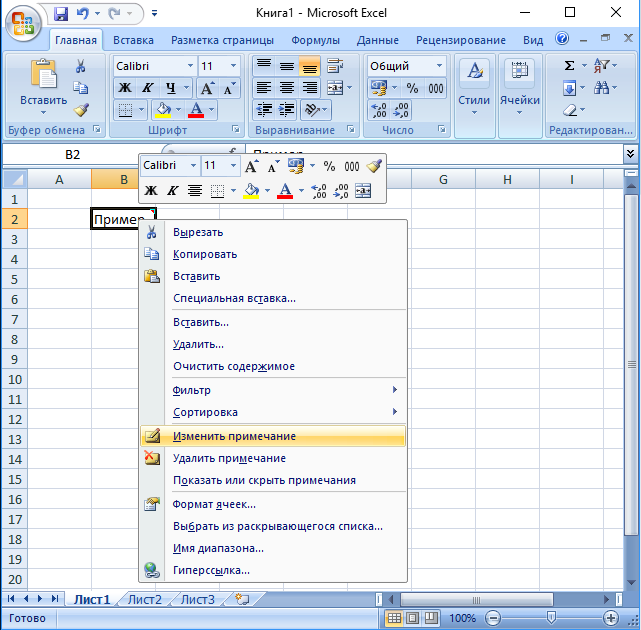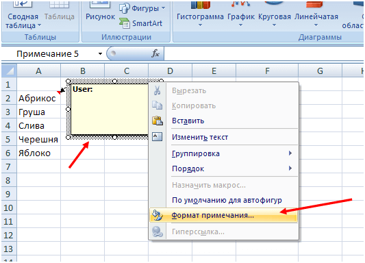 Щелкните ячейку правой кнопкой мыши и выберите пункт Вставить примечание (или нажмите клавиши SHIFT+F2). Если вы используете Excel для Office 365, щелкните ячейку правой кнопкой мыши и выберите пункт Создать заметку.