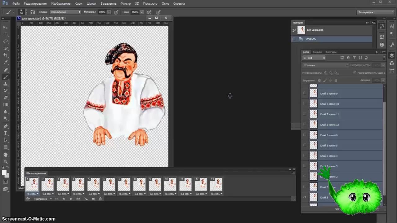 Когда все слои с кадрами уже отредактированы, можно начинать создание анимации.