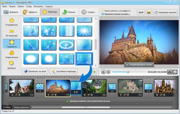 Шаг 3. Вставить эффекты перехода.Как создавать видео на компьютере