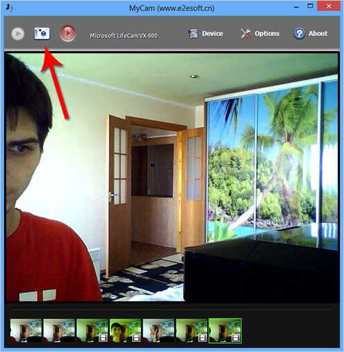 Кроме того, что в MyCam можно осуществлять запись с веб камеры, также ещё можно делать обычные фотографии. Для этого рядом с кнопкой для записи видео, есть кнопка, которая делает обычные фотографии на веб камеру. Это кнопка-иконка в виде фотика. Нажимая её мы будем делать снимки.