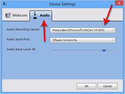 Нажав по кнопке «Device», мы можем настроить видео и звук.
