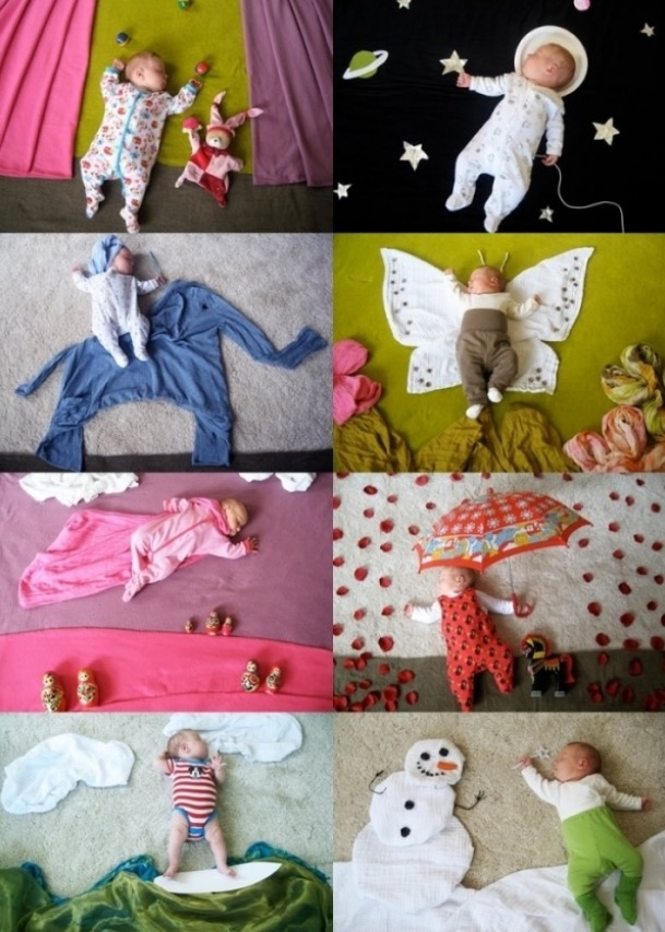 Поэтому лучше не рисковать, и просто запечатлеть естественные позы вашего малыша. Однако, даже используя их, снимки можно разнообразить.