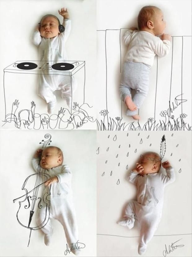 Каждая девочка – маленькая принцесса. Украсьте кровать цветами, добавьте несколько красочных матрасов и корону на голову малышки. И самую важную деталь – горошину. Получилась героиня знаменитой сказки. Любимый сын может стать жителем капусты. Аисту привет!До года дети осваивают первые шаги и способны воспринимать музыку. Даже находятся любители подергать ножкой или подгузником под заводные ритмы. Отличная идея и повод для фотосессии. Осталось включить плеер и ловить момент.