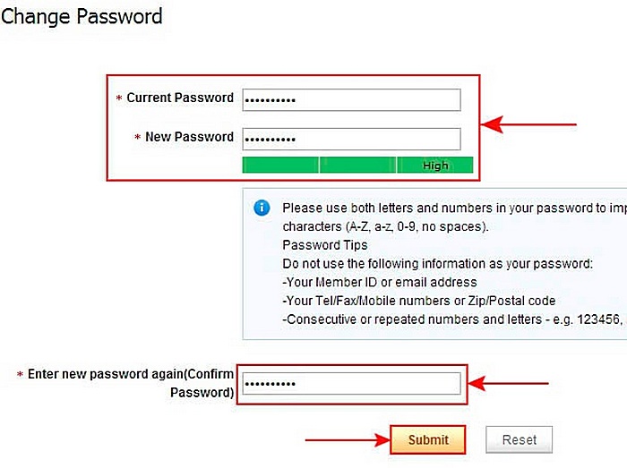 Как только вы нажмете на кнопку Изменить пароль , новый пароль вступит в силу.