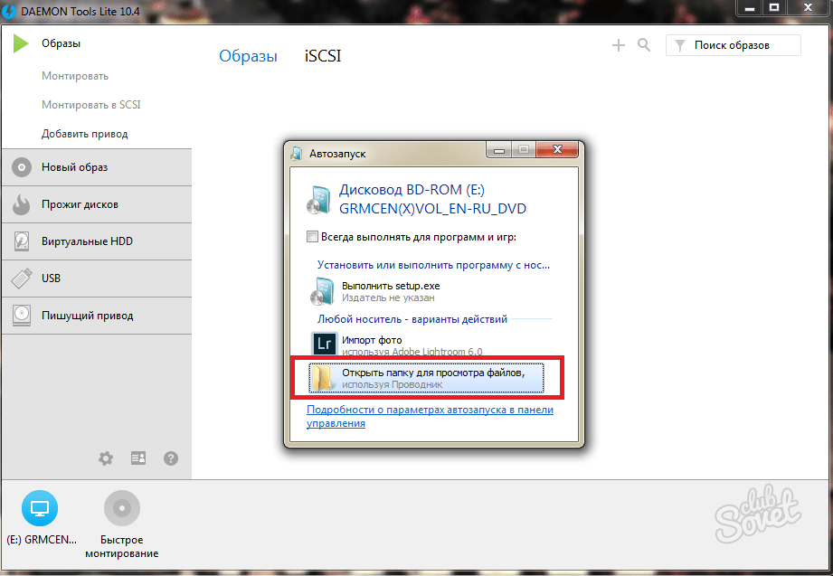 Перечисленные нами способы подразумевают запуск самой программы для эмуляции привода. Если вас это не напрягает, пользуйтесь таким способом. Тем не менее, всё можно существенно упростить. Некоторый софт при установке автоматически подхватывает системные ассоциации файлов и можно будет открыть любой образ как обычный файл двойным щелчком мышки. В частности, такую возможность предоставляет Daemon Tools Lite. При пользовании другими продуктами, при попытке запустить образ диска будет автоматически запущено главное окно программы, в котором и нужно будет производить соответствующие манипуляции. Более всего повезло пользователем Windows начиная с версии 8 — не нужно ничего устанавливать, ведь открыть ISO-файл можно через стандартный Проводник.