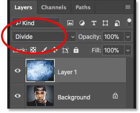 Еще один режим наложения, который отлично подойдет для этих двух изображений – это режим «Разделить» (Divide):