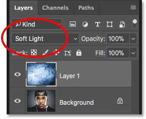 Результаты, которые вы получите от применения различных режимов наложения, будут зависеть от исходных изображений. В моем случае, наилучший результат получился при использовании режима «Мягкий свет» (Soft Light):