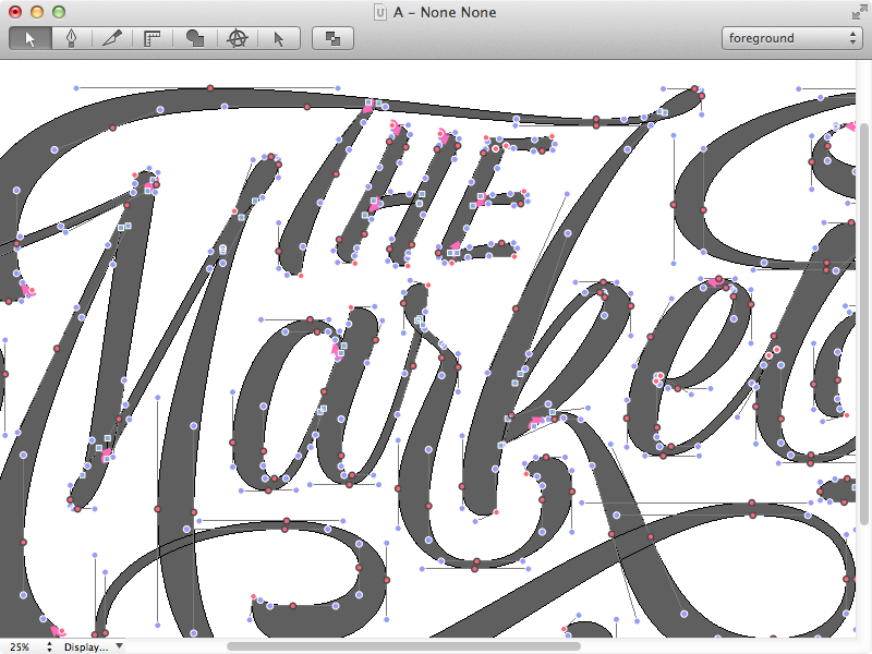 Преобразование текста в контур позволяет редактировать структурные свойства каждой отдельной буквы, как если бы это была пользовательская форма: Преобразование текста в контур позволяет редактировать узлы каждой буквы.