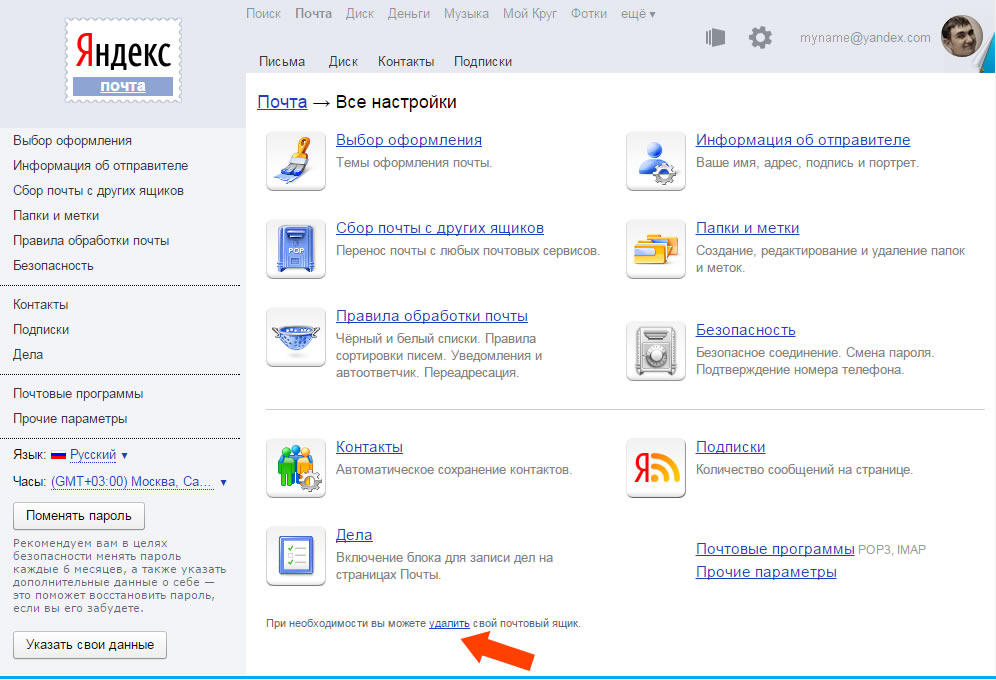 Все дело в том, что разработчики сервиса Яндекс не то чтобы специально спрятали способ удаления почтового аккаунта, а просто не включили его во внешний интерфейс.