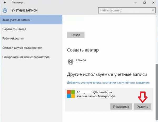 выберите учетную запись, которую хотите удалить, затем выберите Удалить . -